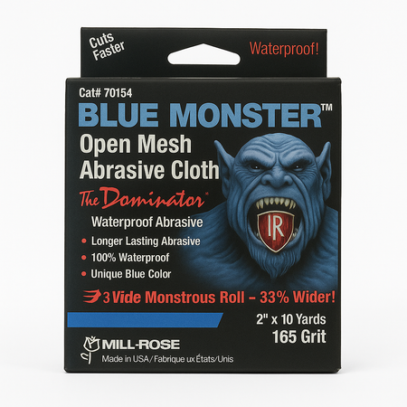 The Blue Monster 70156 features a 2-inch by 25-yard roll of AO open mesh abrasive with a 165 grit rating. Designed for precision surface preparation, this abrasive mesh offers consistent material removal and excellent dust extraction. Its open mesh structure reduces clogging, extending the lifespan of the abrasive and improving efficiency on various substrates. Ideal for professionals seeking reliable performance in sanding and finishing applications.