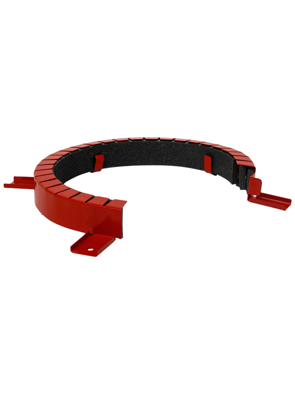 Intumescent firestop collars consist of a steel collar and an intumescent silicone strip suitable for 1.5in, 2in, 3in, and 4in nominal trade size plastic pipes. Intumescent collars are to be fastened around plastic pipes where they penetrate fire-rated floors and walls.