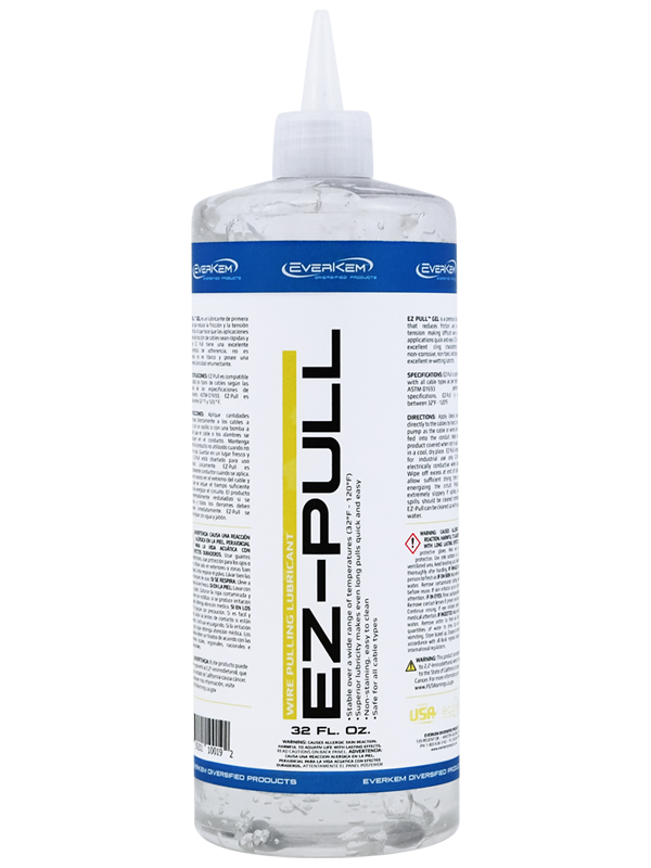 EZ Pull Wire Pulling Lubricant is a premium grade lubricant that reduces friction and limits surface tension making difficult wire pulling applications quick and easy. EZ Pull is compatible with all cable jackets and possesses excellent cling characteristics. EZ Pull is non-corrosive and non-toxic.
